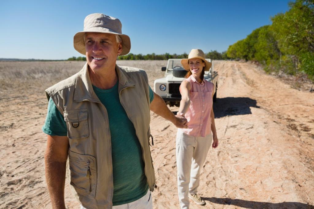 Packen Sie leichte Snacks, wiederbefüllbare Flaschen und Sonnen- beziehungsweise Regenschutz ein. Legen Sie bewusste Pausen für Gespräche fest. Schreiben Sie uns, welche Pausenrituale Ihren Reisen spürbar Ruhe und Freude schenken.